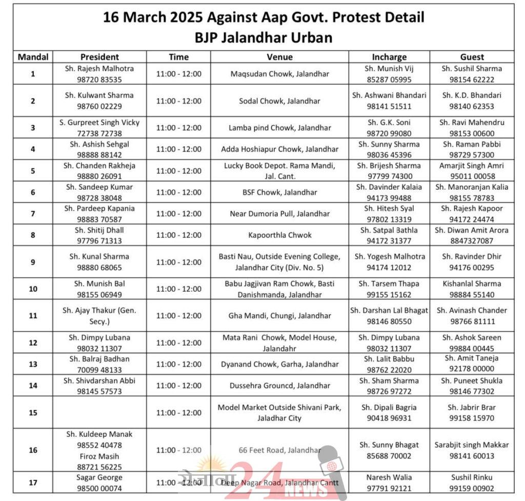 उन्होंने कहा कि प्रदेश की जनता आम आदमी पार्टी के कुशासन को देख चुकी है और 2027 में भाजपा को विजयी बनाने का मन बना चुकी है।इस अवसर पर जिला भाजपा महामंत्री अशोक सरीन हिक्की, मंडल प्रधान राजेश मल्होत्रा,मंडल महामंत्री अनुज शारदा,दिनेश महेंद्रू, गौरव मेहता,मनीष पाठक,अर्जुन सिंह हैप्पी आदि हाजिर थे।
