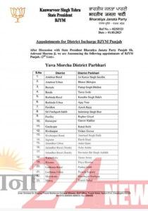 रोजाना24न्यूज: भारतीय जनता युवा मोर्चा द्वारा प्रशांत गंभीर को भारतीय जनता युवा मोर्चा मोगा जिला का प्रभारी नियुक्त किया गया।