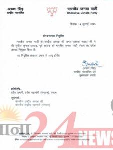 जाखड़ ने कुछ समय पहले ही कांग्रेस छोड़कर भाजपा ज्वाइन की थी। जाखड़ अश्वनी शर्मा की जगह लेंगे। पार्टी में गुटबाजी को हवा देना और जालंधर लोकसभा उपचुनाव में पार्टी का खराब प्रदर्शन अश्वनी शर्मा के लिए महंगा साबित हुआ।