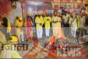 रोजाना24न्यूज: जालंधर के मां बगलामुखी धाम नजदीक लम्मां पिंड चौंक होशियारपुर रोड़ पर स्थित गुलमोहर सिटी में धाम के संस्थापक एवं संचालक नवजीत भारद्वाज की अध्यक्षता में साप्ताहिक मां बगलामुखी हवन यज्ञ करवाया गया। सबसे पहले ब्राह्मणों द्वारा नवग्रह, पंचोपचार, षोढषोपचार, गौरी, गणेश, कुंभ पूजन, मां बगलामुखी जी के निमित माला जाप कर आज के मुख्य यजमान एडवोकेट राज कुमार एवं संजीव शर्मा से पूजा अर्चना उपरांत हवन यज्ञ में आहुतियां डलवाईं।
