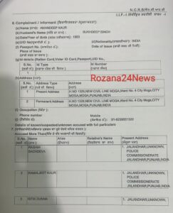 रोजाना24न्यूज: मोगा पुलिस ने वीजा हाउस के संचालक सुरिंदर सहगल उर्फ़ कन्हैया, रश्मी सचदेवा सहित 12 लोगों पर मामला दर्ज कर लिया है। यह मामला वीजा हाउस में काम कर चुकी अमनदीप कौर पत्नी सुखदीप सिंह की शिकायत पर दर्ज हुआ है।
