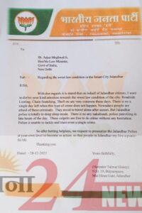 जालंधर पुलिस अपराधियों पर नकेल कसने में असफल साबित हो रही है। इसी मुद्दे को प्रमुखता से युवा नेता हनी तलवार ने केंद्रीय कानून मंत्री के सामने उठाया। हनी तलवार ने कहा कि जालंधर स्मार्ट सिटी के अंतर्गत केंद्र सरकार के अधीन आता है जिसे लेकर उन्होंने केंद्रीय कानून मंत्री से जालंधर और जालंधर के लोगों की रक्षा की गुहार लगाई है और जालंधर में सीआरपीएफ के टुकड़े लगाने के लिए आगह किया है जिसे लेकर केंद्रीय कानून मंत्री ने उन्हें आश्वासन दिया है कि वह जल्द से जल्द पंजाब सरकार को और पंजाब गृहमंत्री को लेकर एक बड़ी चिट्ठी लिखेंगे और जालंधर में हो रही अपराधी घटनाओं पर लगाम कसने के लिए प्रमुखता के लिए तौर पर कहेंगे।