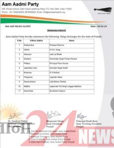 Jalandhar आम आदमी पार्टी ने पंजाब में हल्का इंचार्ज किए नियुक्त Rozana 24 News February 20, 2024 Facebook 0 Twitter 0 WhatsApp LinkedIn Continue Reading Previous: गुप्त नवरात्रों में महानवमी के दिन ट्रस्ट महाकाली मंदिर में शतचंडी महायज्ञ पूर्णाहुति से संपन्नNext: जीविका जस्सल द्वारा गुरु रविदास प्यारा नाम भक्ति गीत और पोस्टर रिलीज किया गया Leave a Reply Cancel replyYour email address will not be published. Required fields are marked *Comment * Name * Email * Website Save my name, email, and website in this browser for the next time I comment. Related Stories वन्दे भारत ट्रेन का एक स्टोपेज गुड़गांव में दिया जाए : प्रशांत गंभीर Jalandhar वन्दे भारत ट्रेन का एक स्टोपेज गुड़गांव में दिया जाए : प्रशांत गंभीर February 8, 2026 AAP नेता की सिर और सीने पर 6 गोलियां मारकर हत्या; गुरुद्वारे में माथा टेकने आए थे Jalandhar AAP नेता की सिर और सीने पर 6 गोलियां मारकर हत्या; गुरुद्वारे में माथा टेकने आए थे February 6, 2026 वर्ल्ड यूथ फेस्टिवल को लेकर रूस में तैयारियां शुरू, इस बार फेस्टिवल में 10 हजार प्रतिनिधि होंगे शामिल Jalandhar वर्ल्ड यूथ फेस्टिवल को लेकर रूस में तैयारियां शुरू, इस बार फेस्टिवल में 10 हजार प्रतिनिधि होंगे शामिल February 3, 2026